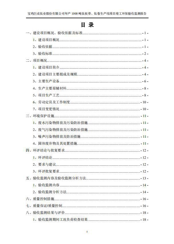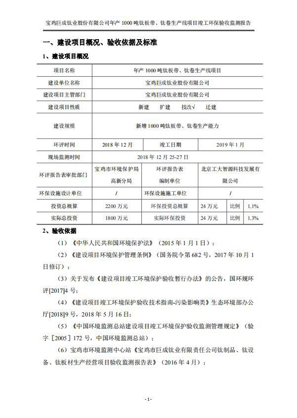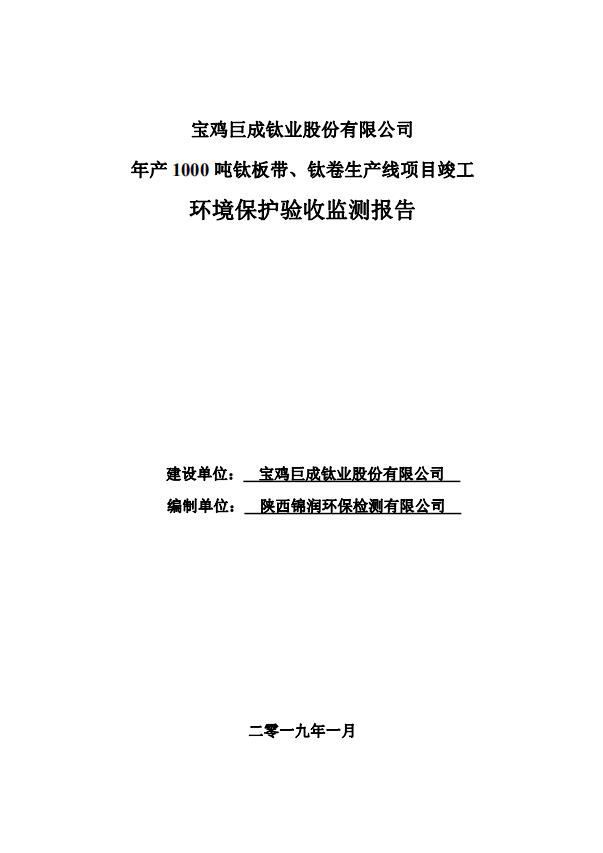 宝鸡巨成钛业股份有限公司年产1000吨钛板带、钛卷生产线项目验收报告(1)